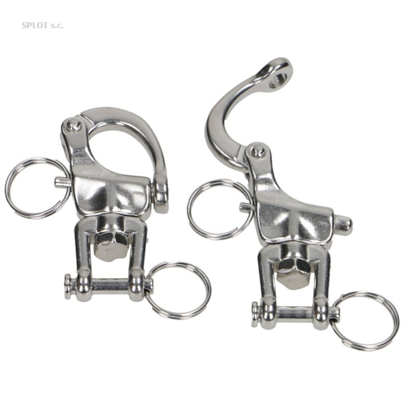 Szekla zatrzaskowa z krętlikiem do szybkiego zapinania. Wykonana ze stali nierdzewnej kwasoodpornej tzw. A4